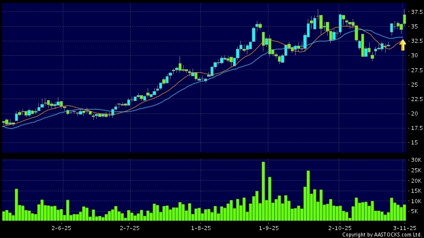黄金交叉是一个利好讯号,指股价的短期移动平均线升穿长期移动平均线,例如50天线升穿250天线,在图表上构成交叉的形状。股价通常会上升形成一个上升趋势,技术走势向好。(港股报价延迟最少十五分钟。沽空资料截至 2025-11-03 16:25。)
