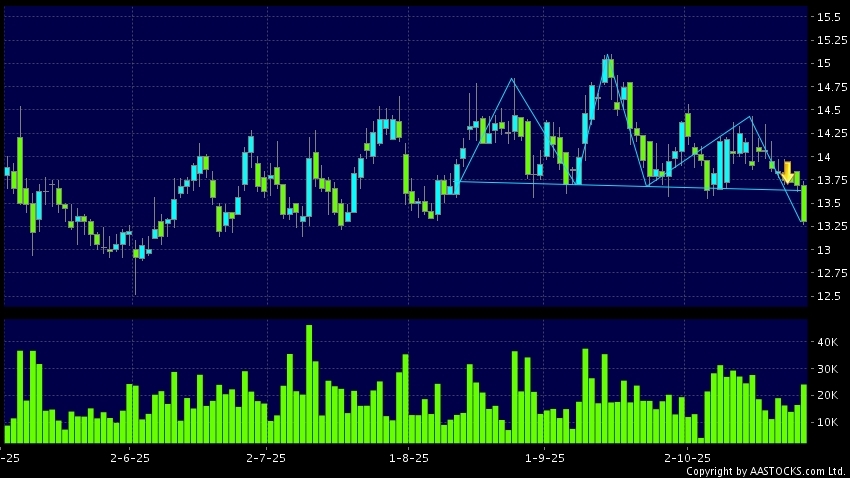 免責聲明:以上金融市場數據、報價、圖表 及/或各種技術分析指標乃根據公開資料分析和演釋自動生成的,僅作參考使用。此類自動生成的內容並不代表AASTOCKS.com Limited的立場。AASTOCKS.com Limited並不保證其準確性、完整性、實時性或者正確性。閣下應諮詢獨立專業意見,以核實定價資料或獲取更詳細的市場信息及須為所有跟隨此類自動生成的內容執行的交易或使用該內容負責。