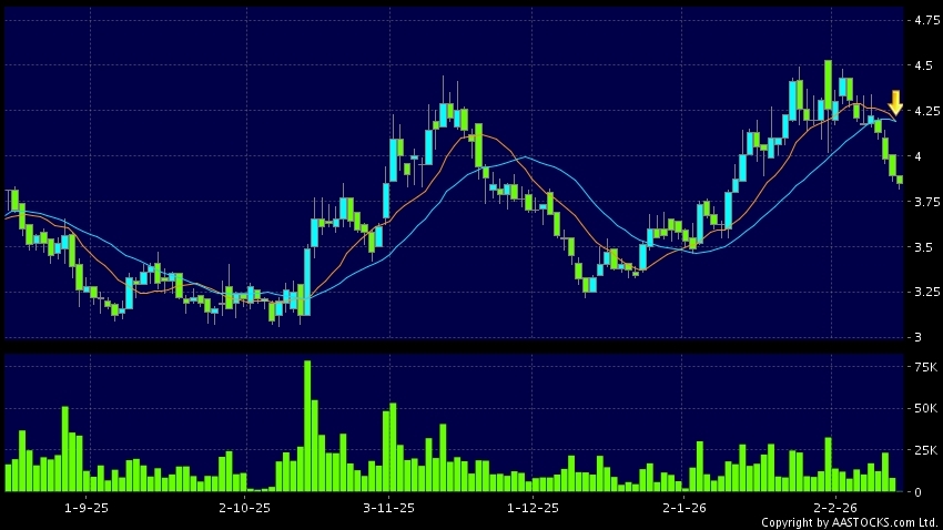 鍋圈(02517.HK) +0.060 (+1.542%) 沽空 $2.82百萬; 比率 7.895% 10天移動平均線跌穿20天移動平均線,出現死亡交叉。現價報3.850,下跌1.028%,成交量61.80萬股,成交額2.39百萬。